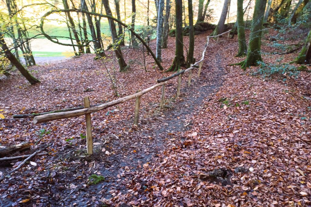 Nous avons ensuite drainé les zones de mouilles ponctuelles puis ajouté des barrières afin de canaliser le public et éviter les piétinements en dehors du sentier.