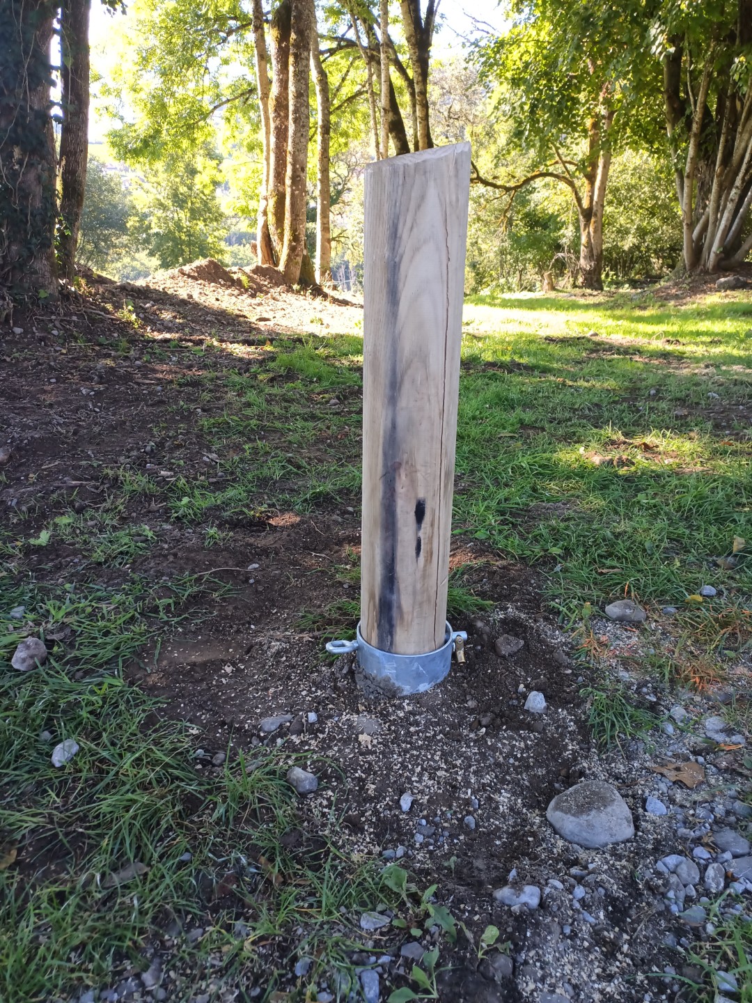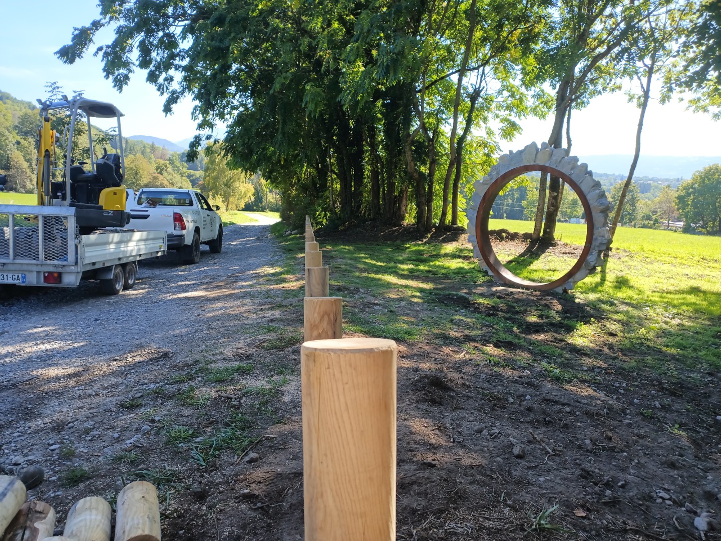 Nous avons installé une rangée de plots en châtaignier fraisé afin de protéger une œuvre d’art au départ d’un sentier.