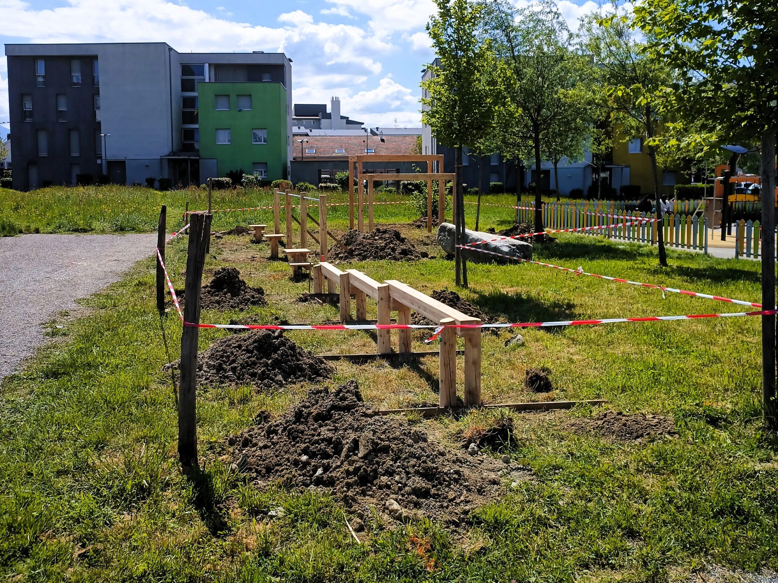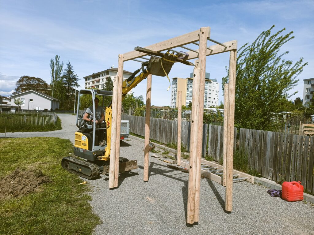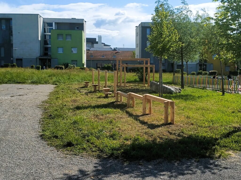 - Pose de mobilier sportif en bois (slackline, échelles horizontale, poutre d’équilibre, pas japonais)
